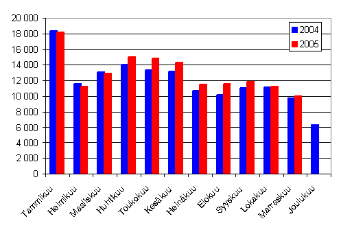 Lähde: Ensirekisteröintitilastot 2005. Tilastokeskus, AKE