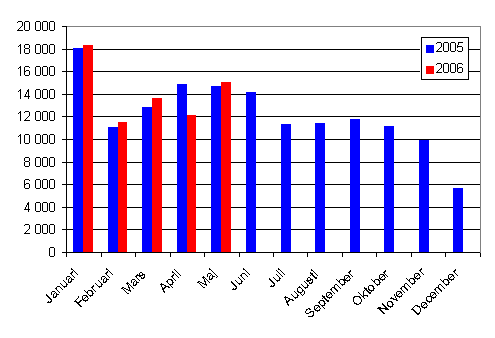 Under januari-maj 2006 registrerades 125 047 nya fordon. Jämfört med året innan var ökningen 3,1 procent. Under början av året var antalet första registreringar av personbilar 71 201, vilket är 1,1 procent mindre än i fjol. De mest allmänna personbilsmärkena i första registreringarna under början av året var Toyota, Volkswagen och Nissan.