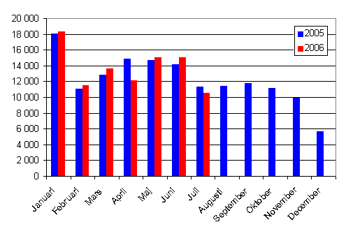 Under januari-juli 2006 registrerades 174 872 nya fordon. Jämfört med året innan var ökningen 4,0 procent. Under början av året var antalet första registreringar av personbilar 96 962, vilket är 0,8 procent mindre än i fjol. De mest allmänna personbilsmärkena i första registreringarna under början av året var Toyota, Volkswagen och Nissan.