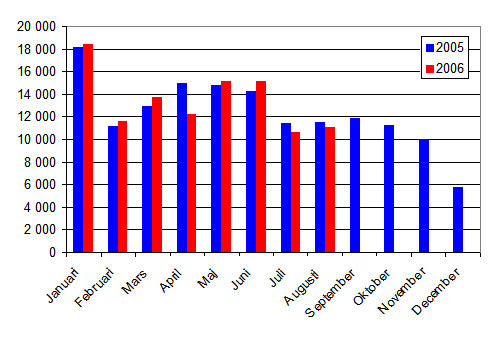 Under januari-augusti 2006 registrerades 195 266 nya fordon. Jämfört med året innan var ökningen 4,1 procent. Under början av året var antalet första registreringar av personbilar 108 030, vilket är 1,2 procent mindre än i fjol. De mest allmänna personbilsmärkena i första registreringarna under början av året var Toyota, Volkswagen och Nissan.