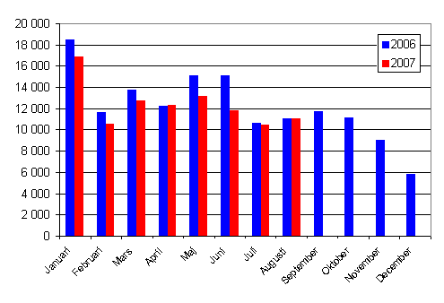 Under januari-augusti 2007 registrerades 189 324 nya fordon. Jämfört med året innan var minskningen 3,0 procent. Under början av året var antalet första registreringar av personbilar 98 867, vilket är 8,5 procent mindre än i fjol. De mest allmänna personbilsmärkena i första registreringarna under början av året var Toyota, Volkswagen och Ford.