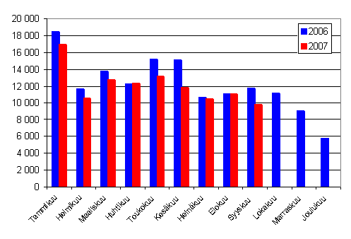 Tammi-syyskuussa 2007 ensirekisteröitiin 207 055 ajoneuvoa. Vähennystä edellisvuoteen oli 3,9 %. Tammi-syyskuussa henkilöautoja ensirekisteröitiin 108 687, mikä on 9,2 % edellisvuotta vähemmän. Yleisimmät henkilöautomerkit alkuvuoden ensirekisteröinneissä olivat Toyota, Volkswagen ja Volvo.