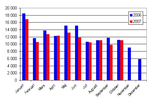 Under januari-oktober 2007 registrerades 228 475 nya fordon. Jämfört med året innan var minskningen 2,2 procent. Under januari-oktober var antalet första registreringar av personbilar 119 757, vilket är 8,5 procent mindre än i fjol. De mest allmänna personbilsmärkena i första registreringarna under början av året var Toyota, Volkswagen och Volvo.