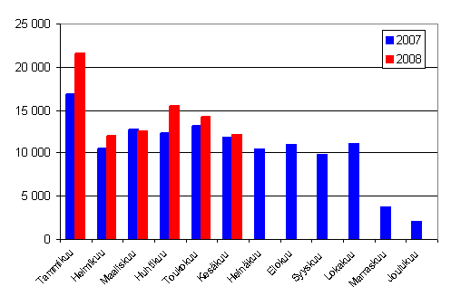 Lähde: Ensirekisteröintitilastot 2008. Tilastokeskus, AKE