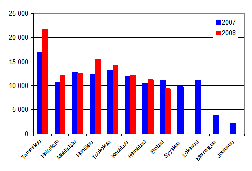 Lähde: Ensirekisteröintitilastot 2008. Tilastokeskus, AKE