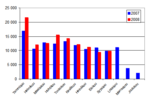 Lähde: Ensirekisteröintitilastot 2008. Tilastokeskus, AKE