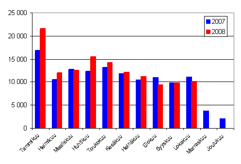 Lähde: Ensirekisteröintitilastot 2008. Tilastokeskus, AKE