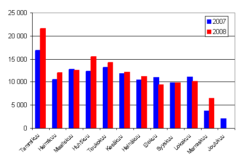 Lähde: Ensirekisteröintitilastot 2008. Tilastokeskus, AKE