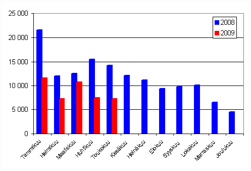 Tammi-toukokuussa 2009 ensirekisteröitiin 83 507 ajoneuvoa. Vähennystä edellisvuoteen oli 35,7 %. Alkuvuonna henkilöautoja ensirekisteröitiin 44 151, mikä on 41,8 % edellisvuotta vähemmän. Yleisimmät henkilöautomerkit tammi-toukokuun 2009 ensirekisteröinneissä olivat Toyota, Volkswagen ja Ford.