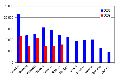 Lähde: Ensirekisteröintitilastot 2009. Tilastokeskus, AKE