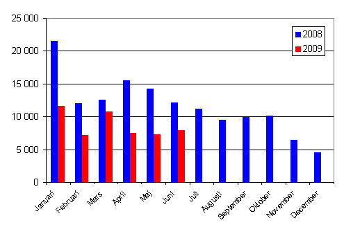 I juni 2009 registrerades 7 905 nya personbilar