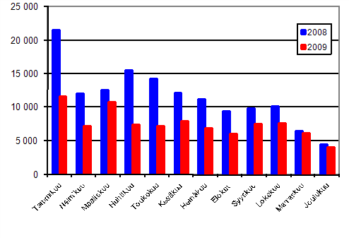 Lähde: Ensirekisteröintitilastot 2009. Tilastokeskus, TraFi