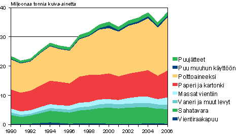 Suomessa käytetyn puun kokonaismäärästä poltettiin 47 prosenttia vuonna 2006. Paperiin ja kartonkiin sitoutui 24 prosenttia, sahatavaraan 13, puulevyihin 4 sekä vientimassoihin 7 prosenttia puuaineksesta. Tiedot ilmenevät Tilastokeskuksen metsätilinpidon puun käyttötaseesta ja massataseesta.