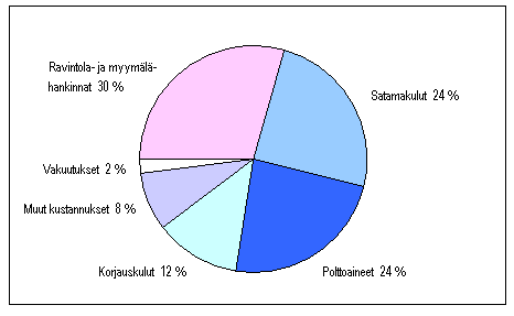 Kolmanneksi suurin yksittäinen menoerä oli polttoainemenot. Niitä maksettiin 68 miljoonaa euroa, mikä on noin 5 miljoonaa euroa vähemmän kuin edellisenä vuonna. Suomalaisten alusten osalta muita kuluja, mm. korjauskuluja ja vakuutusmaksuja, maksettiin ulkomaille yhteensä 64 miljoonaa euroa.