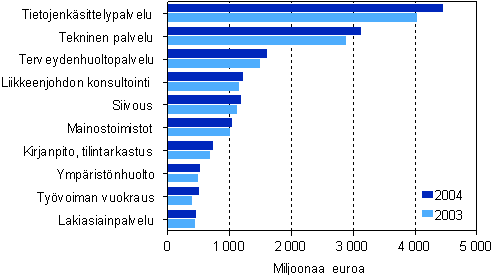 Liikevaihto eräillä liike-elämän palvelujen toimialoilla 2003-2004