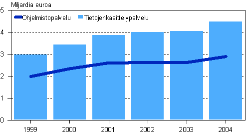 Tietojenkäsittely- ja ohjelmistopalvelun liikevaihto 1999-2004
