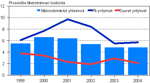 Mainostoimistojen kannattavuuden tunnuslukuja 1999-2004