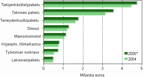 Liike-elämän palvelujen liikevaihto oli vuonna 2005 Tilastokeskuksen ennakkotietojen mukaan 10,1 prosenttia suurempi kuin vuotta aikaisemmin. Liikevaihto kasvoi 1,8 miljardilla eurolla edellisvuodesta. Liikevaihtoa kertyi 19,3 miljardia euroa.