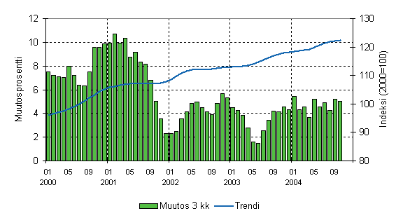 Lähde: Liiketoiminnan kuukausikuvaajat 2004, lokakuu. Tilastokeskus