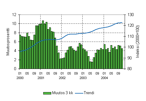 Lähde: Liiketoiminnan kuukausikuvaajat 2004, marraskuu. Tilastokeskus