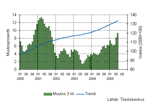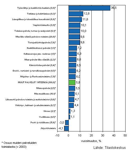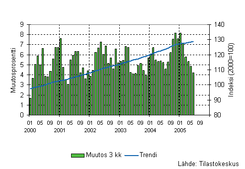 Palvelualojen liikevaihto oli Tilastokeskuksen mukaan vuoden 2005 toisella neljänneksellä 5,8 prosenttia suurempi kuin vastaavana ajanjaksona vuotta aiemmin. Kuluvan vuoden ensimmäisellä neljänneksellä liikevaihdon lisäys oli 5,5 prosenttia. Palvelualoissa ei ole mukana kaupan toimialoja ja liikevaihto on työpäiväkorjattu poistamalla kalenterista aiheutuvat vaihtelut.