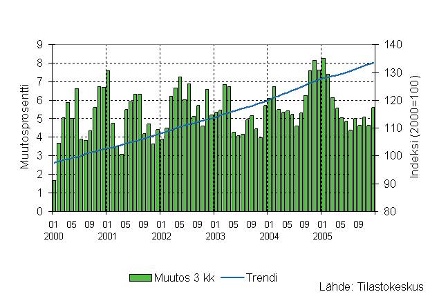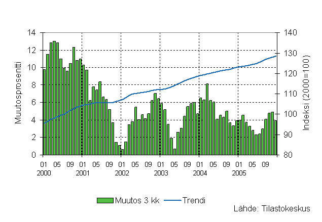 Lähde: Liiketoiminnan kuukausikuvaajat 2005, joulukuu. Tilastokeskus