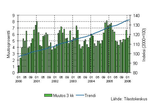 Majoitus- ja ravitsemistoiminnan liikevaihto kasvoi vuoden 2006 helmikuuhun päättyneellä kolmen kuukauden ajanjaksolla 5,5 prosenttia. Toimialan liikevaihdon kehitys on ollut erityisen suotuisaa viime vuoden kesästä lähtien.