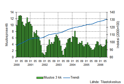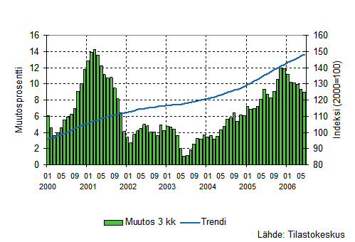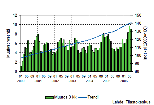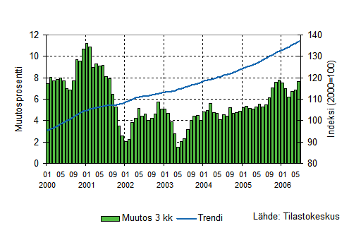 Palvelualojen liikevaihto oli Tilastokeskuksen mukaan vuoden 2006 toisella neljänneksellä 7,6 prosenttia suurempi kuin vastavana ajanjaksona vuotta aiemmin. Vuoden ensimmäisellä neljänneksellä liikevaihdon lisäys oli 6,2 prosenttia. Palvelualoissa ei ole mukana kaupan toimialoja ja liikevaihto on työpäiväkorjattu poistamalla kalenterista aiheutuvat vaihtelut.
