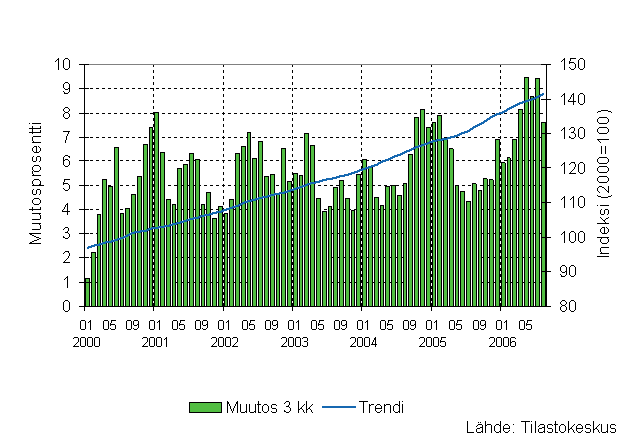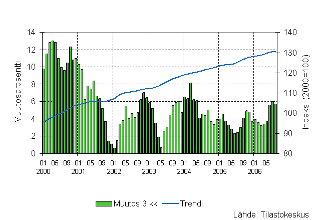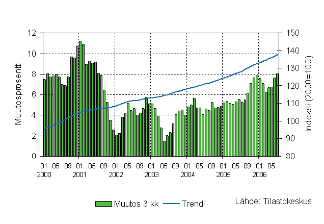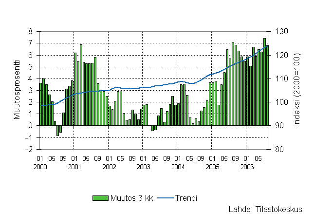 Lähde: Liiketoiminnan kuukausikuvaajat 2006, elokuu. Tilastokeskus