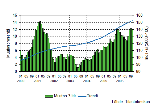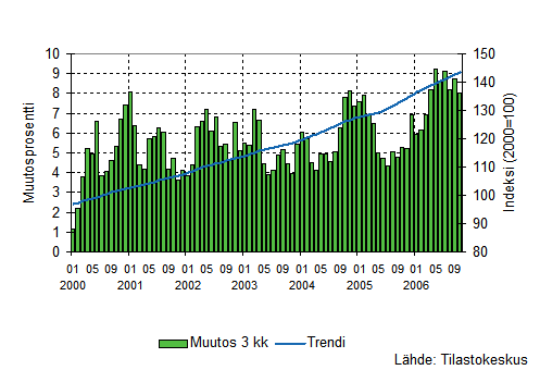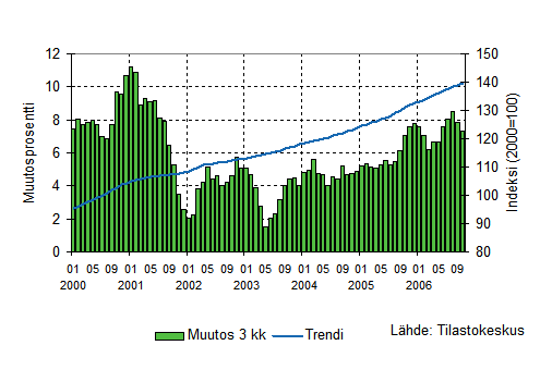Palvelualojen liikevaihto kasvoi Tilastokeskuksen mukaan vuoden 2006 elo-lokakuussa 7,3 prosenttia edellisen vuoden vastaavasta ajanjaksosta. Edellisellä heinäkuuhun päättyneellä kolmen kuukauden jaksolla liikevaihdon lisäys oli 8 prosenttia. Palvelualoissa ei ole mukana kaupan toimialoja ja liikevaihto on työpäiväkorjattu poistamalla kalenterista aiheutuvat vaihtelut.
