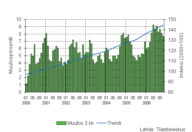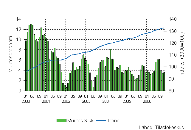Lähde: Liiketoiminnan kuukausikuvaajat 2006, marraskuu. Tilastokeskus