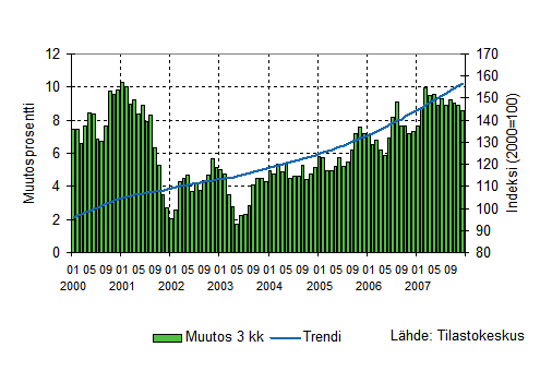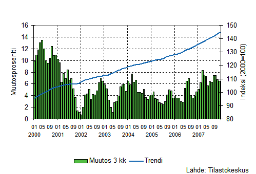 Lähde: Liiketoiminnan kuukausikuvaajat 2007, joulukuu. Tilastokeskus