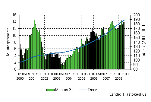Lähde: Liiketoiminnan kuukausikuvaajat 2008, kesäkuu. Tilastokeskus