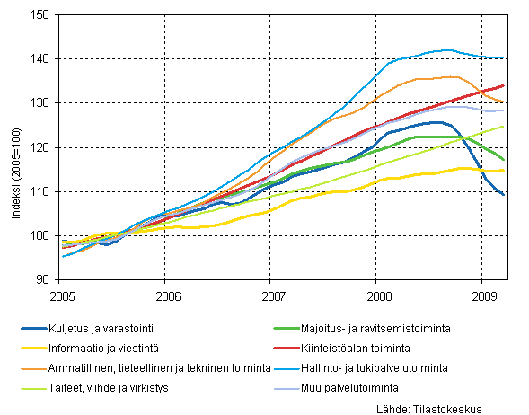 Liikevaihdon trendit toimialoittain 3/2009 (TOL 2008)