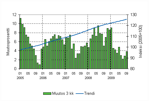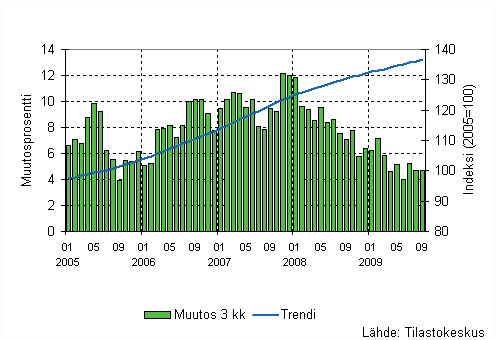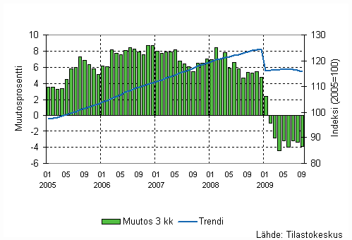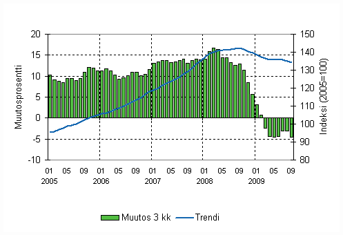 Lähde: Liiketoiminnan kuukausikuvaajat 2009, syyskuu. Tilastokeskus
