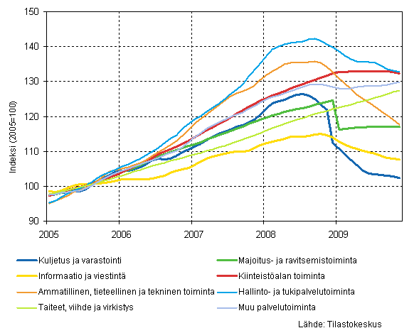 Liikevaihdon trendit toimialoittain 11/2009 (TOL 2008)