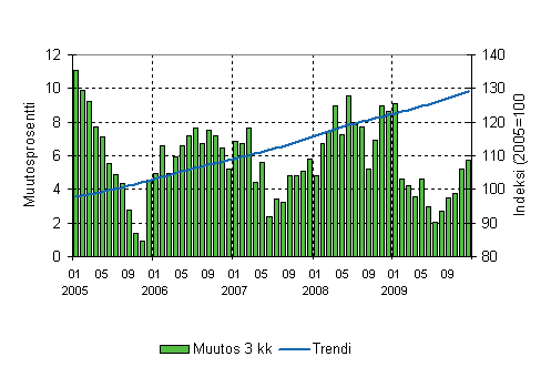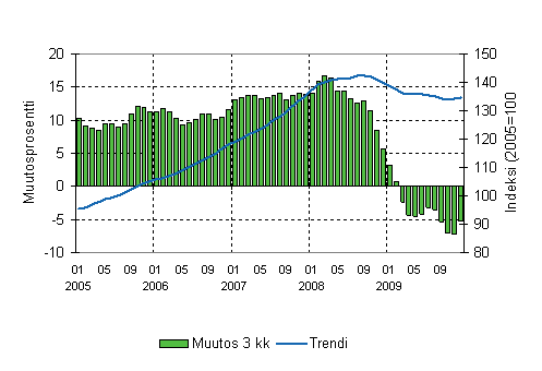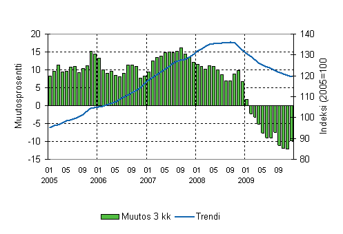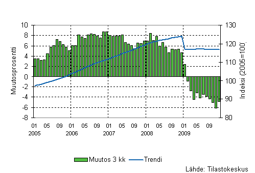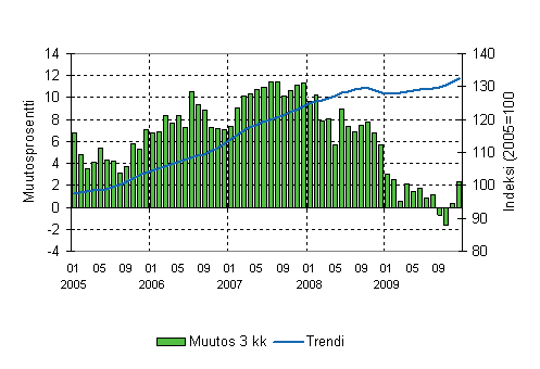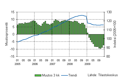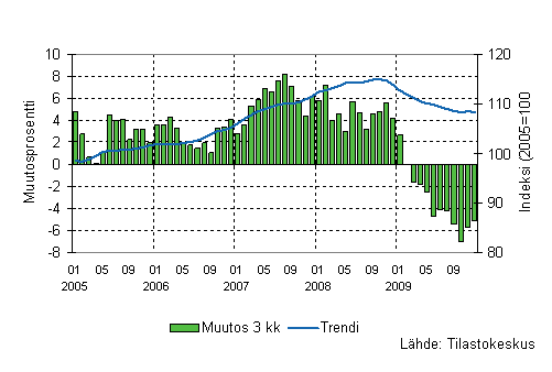 Lähde: Liiketoiminnan kuukausikuvaajat 2009, joulukuu. Tilastokeskus
