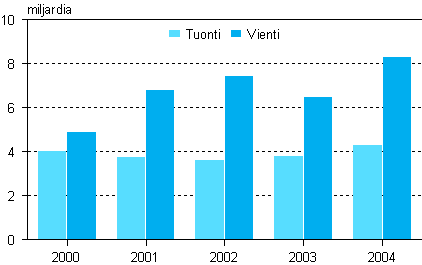 Palvelujen tuonti ja vienti vuosina 2000-2004