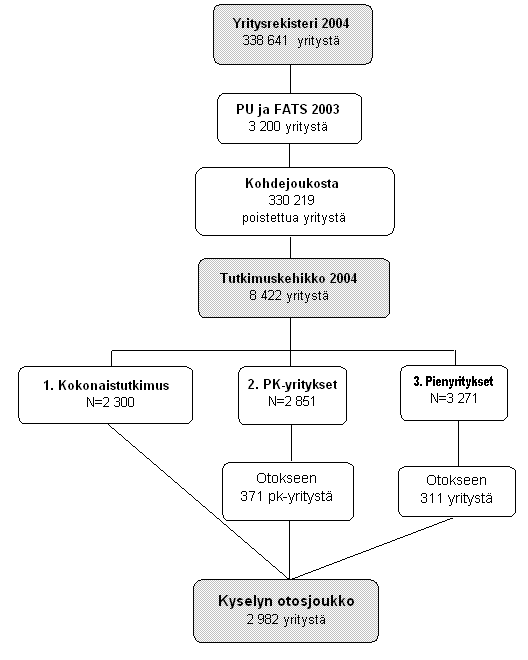 Kyselyn otosjoukon kooksi saatiin 2 982 yritystä, joille lähetettiin kyselylomake tammikuussa 2005.