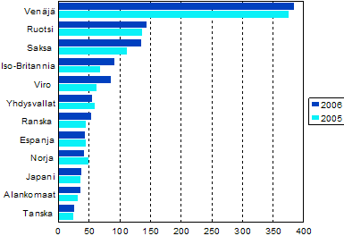 Julkaisu: Ulkomaiset matkailijat Suomessa vuonna 2006. Matkailun edistämiskeskus / Tilastokeskus