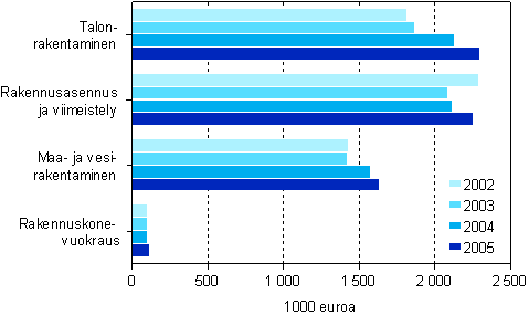 Koko rakentamisenjalostusarvo kasvoi vuodesta 2004 vuoteen 2005 runsaat 6 prosenttia yltäen 6,3 miljardiin euroon. Myös vuotta aiemmin rakentamisen jalostusarvo nousi lähes 7 prosenttia.