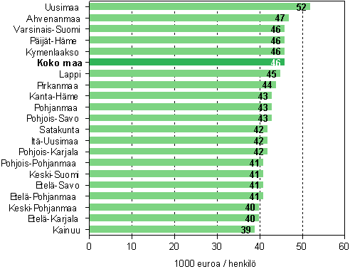 Vuonna 2002 tuottavimmat maakunnat olivat Uusimaa, Ahvenanmaa, Varsinais-Suomi ja Päijät-Häme. Vuonna 2002 koko maan tuottavuus oli keskimäärin 45 957 euroa henkilö kohden.