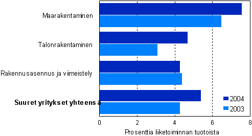 Rakentamisen suurten yritysten käyttökateprosentit 2003-2004¹