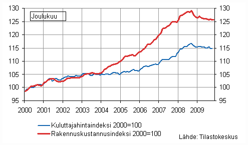 Rakennuskustannusindeksi 2000=100 ja kuluttajahintaindeksi 2000=100