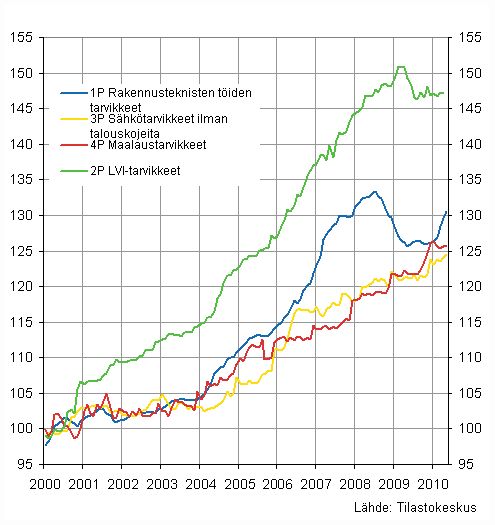 Osa-indeksit 2000=100, kesäkuu 2010