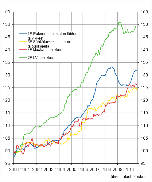 Liitekuvio 2. Osa-indeksit 2000=100, lokakuu 2010