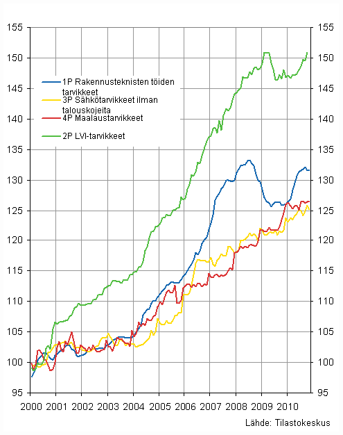 Liitekuvio 2. Osa-indeksit 2000=100, joulukuu 2010