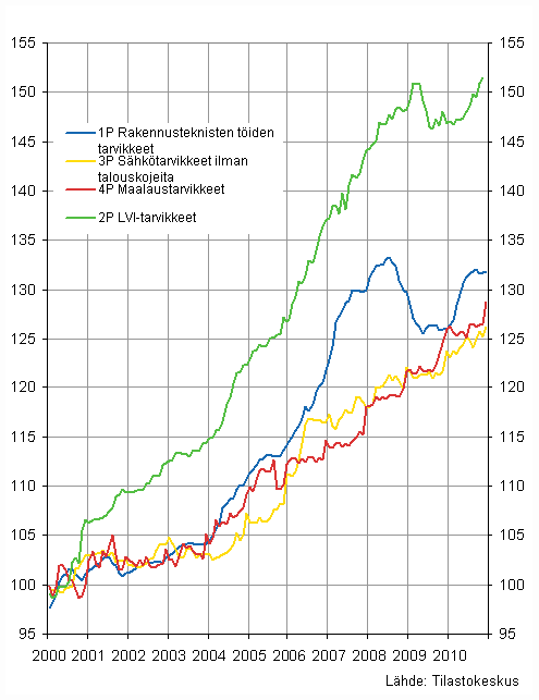 Liitekuvio 2. Osa-indeksit 2000=100, tammikuu 2011