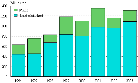 Kuvio 1. Rahoitusleasinginvestoinnit vuosina 1996-2003