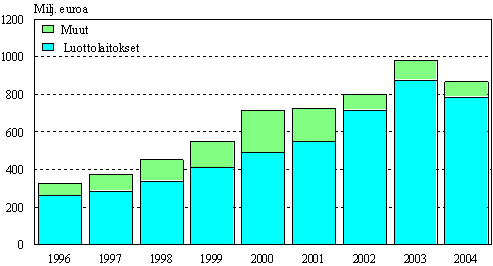 Kuvio 2. Rahoitusleasinvuokrat vuosina 1996-2004